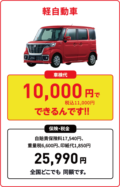 保険代・税金は 日本全国、1円たりとも変わりませんので、他店と比較しても同じ金額になります。自らユーザー車検を実施しても同額が必要となります。