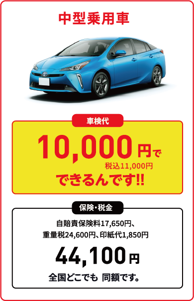 ※別途OBD点検料2,750円または、OBD検査対象車は3,300円がかかる場合がございます。